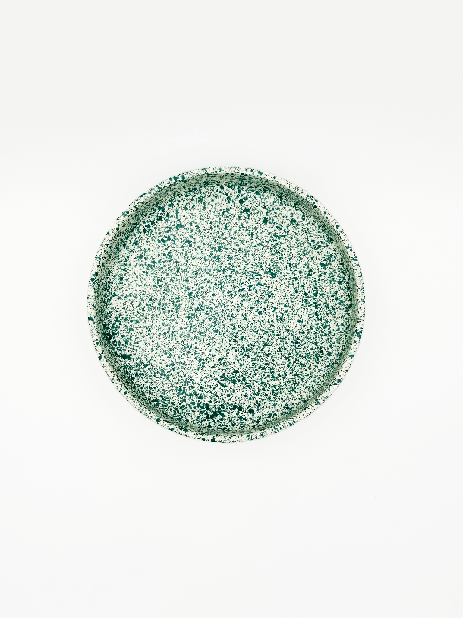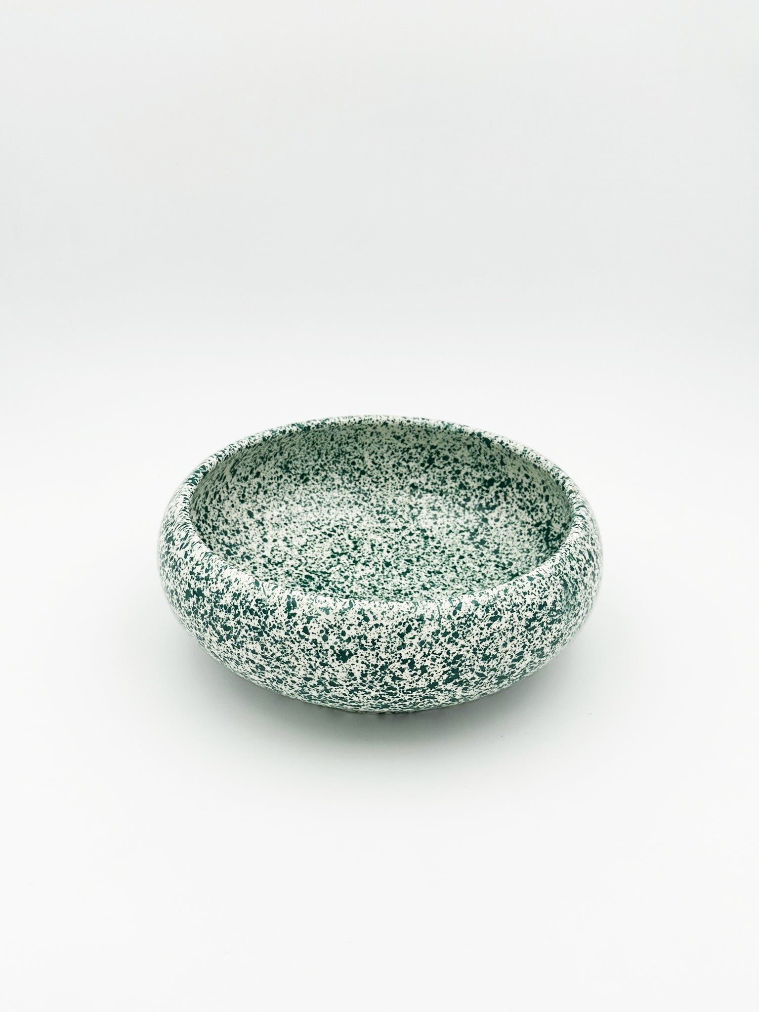 Un format généreux et enveloppant, pensé pour sublimer vos plats chauds, salades composées ou recettes en sauce. Sa forme arrondie et ses tâches vertes appliquées à la main lui confèrent une présence à la fois organique et contemporaine.