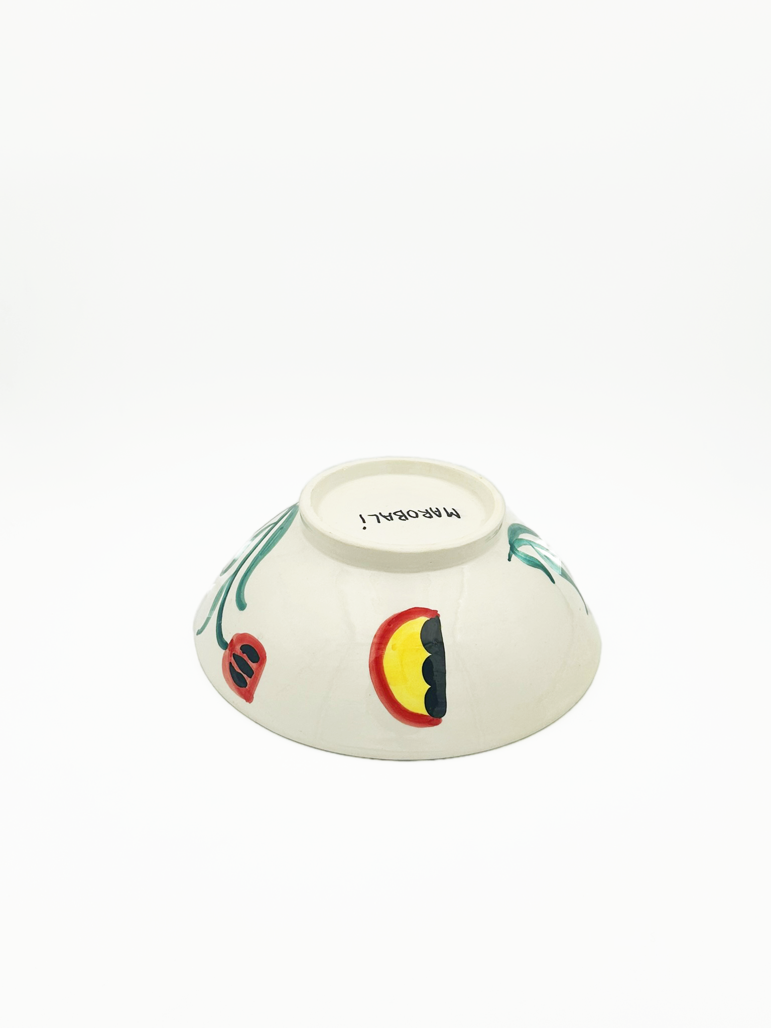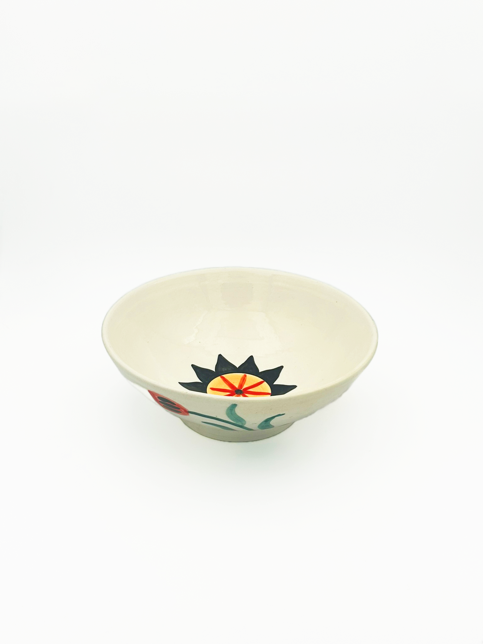 Ce saladier à la silhouette généreuse se distingue par ses motifs peints à la main, à la fois joyeux et poétiques. Une pièce artisanale unique, parfaite pour présenter vos salades, fruits ou plats familiaux avec une touche de fantaisie.