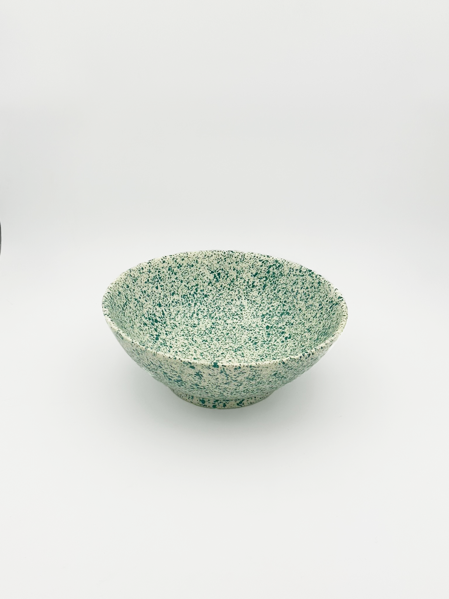 Avec sa forme intemporelle et ses motifs verts éclatants, ce saladier est à la fois pratique et expressif. Il accueillera généreusement vos salades, fruits ou plats à partager. Chaque pièce est réalisée à la main, avec une attention particulière portée au détail.